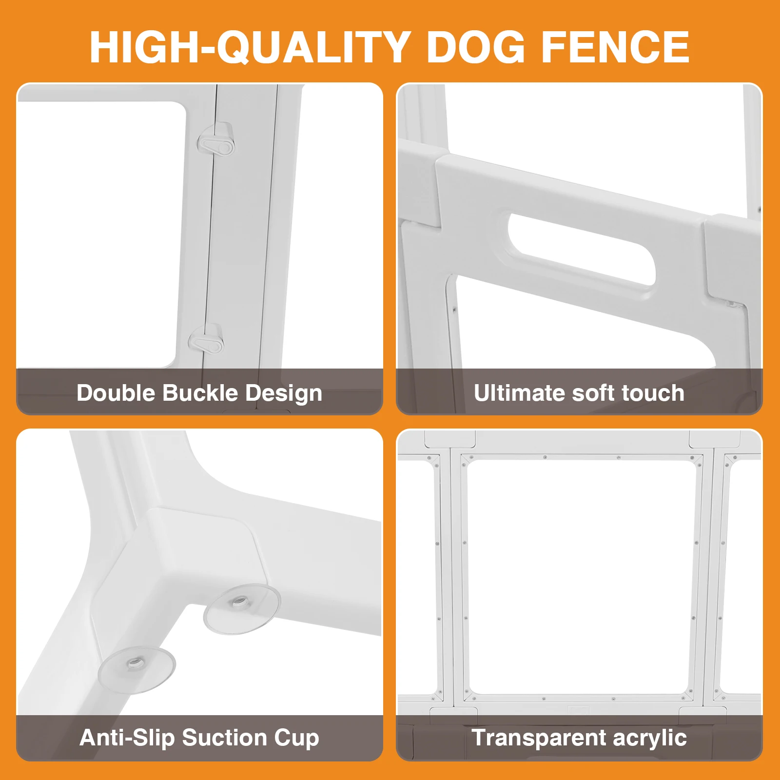 | Clear Acrylic Puppy Playpen Easy Assemble Whelping Crate Transparent Kennel Cage with Door for Puppy/Small Dog/Rabbit/Pig Features: 1.Clear Visual Access: Featuring a transparent acrylic structure, this puppy playpen offers unobstructed visibility between pets and owners, helping to ease your furry friend's anxiety and promote a closer bond in any setting. 2.Modern Stylish Look: The clear design effortlessly integrates this whelping crate into contemporary home decor, enhancing the overall beauty of your living space while providing a functional enclosure for your pet. 3.Escape-Proof Structure: Designed with optimal fence height and sturdy assembly, this kennel cage keeps energetic pets safely within boundaries, significantly reducing the chance of climbing or accidental escapes for peace of mind. 4.Smooth Edge Finishing: All corners and sides of this pet fence are rounded and polished to prevent injuries, ensuring both your pet and your family stay safe during interaction and daily use. 5.Versatile For Many Pets: This pet pen is suitable for bichons, other small to medium dogs, cats, and a variety of smaller animals, making it a universally practical solution for different household companions. Specification: Origin: Mainland China Product Dimensions: 1500.00 x 1500.00 x 600.00 mm / 59.06 x 59.06 x 23.62 inches Material: Plastic + Acrylic Note: Due to different monitor settings and lighting conditions, the actual color of the item may vary slightly from the pictures. Thanks for your understanding! Please allow a 1-2 cm difference in measurements due to manual measuring. 1 x Puppy Playpen |
