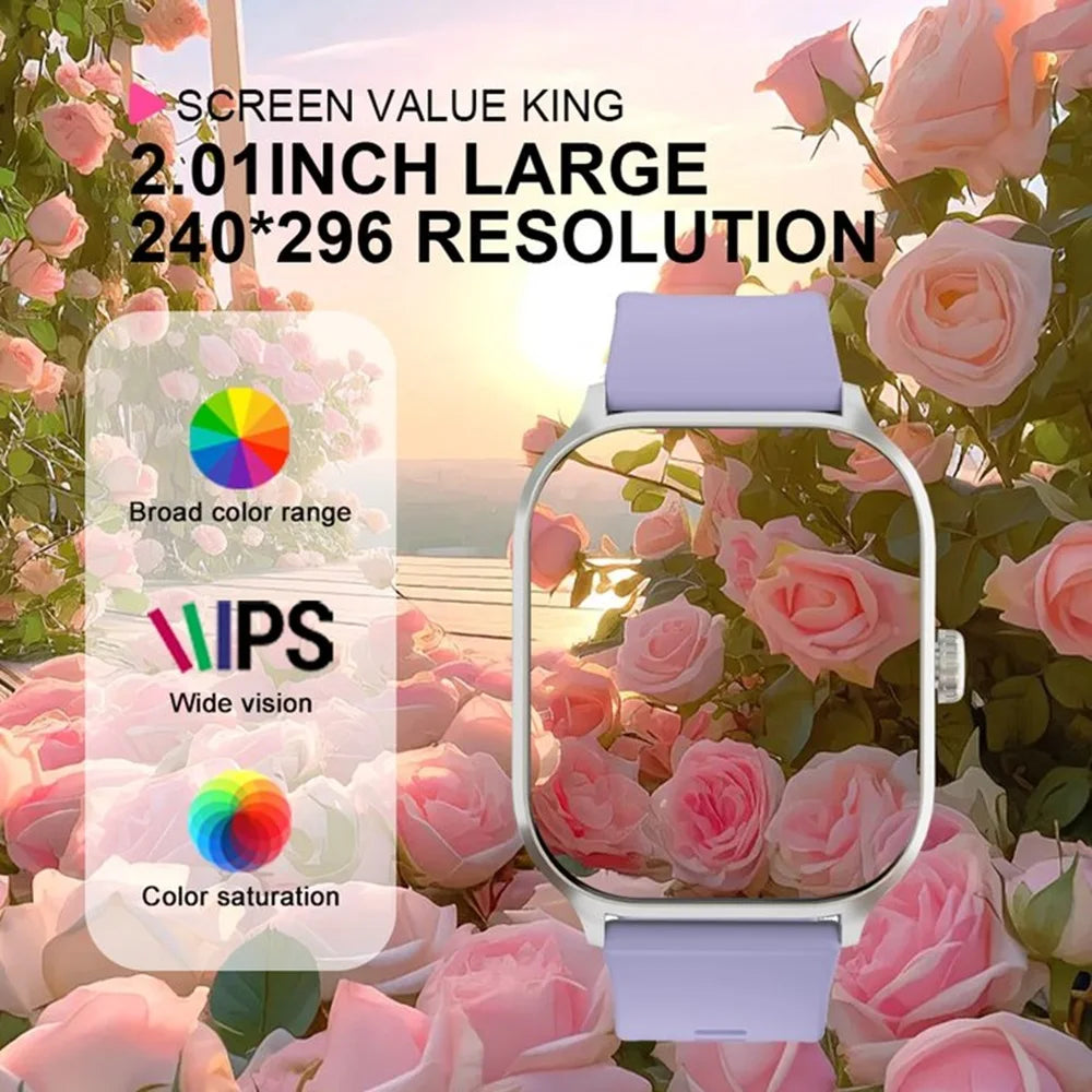 - Enjoy a bright 2.01-inch TFT display, square case, detachable band, and 100+ watch faces you can sync or customize via the Da Fit app.